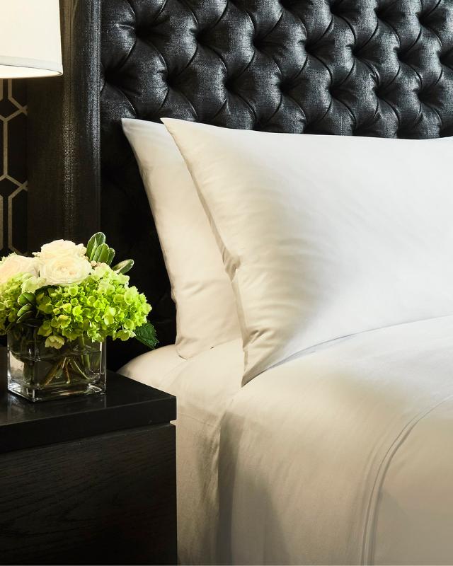 The best hotel linen and an every-season down comforter — soft, breathable, feather-light warmth. Our linens are 100% cotton.
