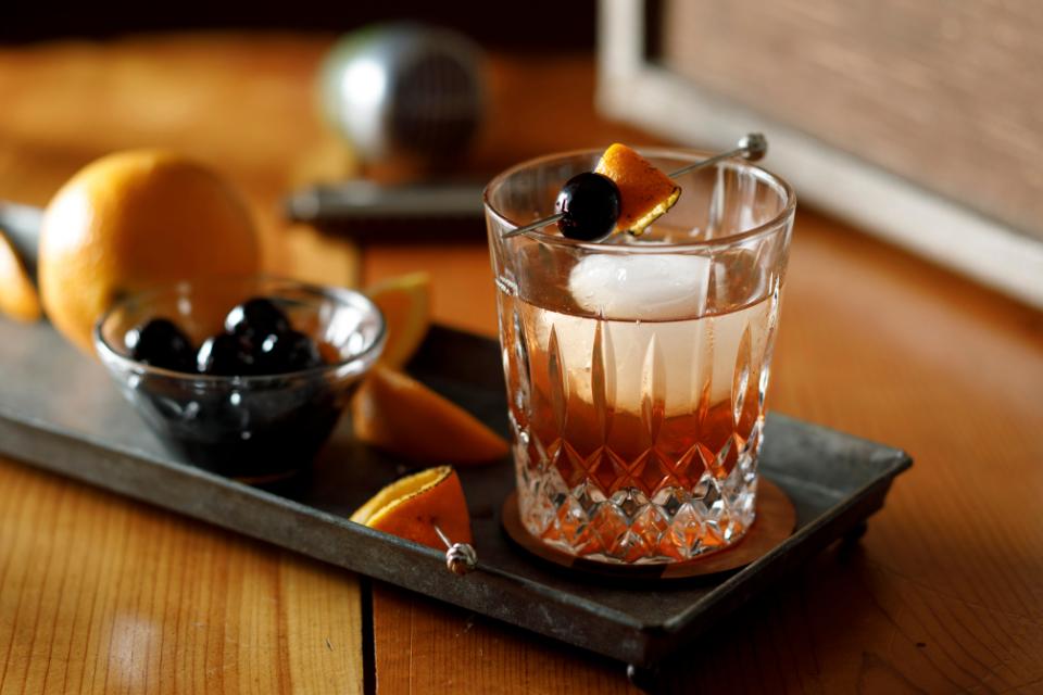 Ron Zacapa Rum, simple syrup, Hella Orange Bitters, Luxardo cherry, orange peel